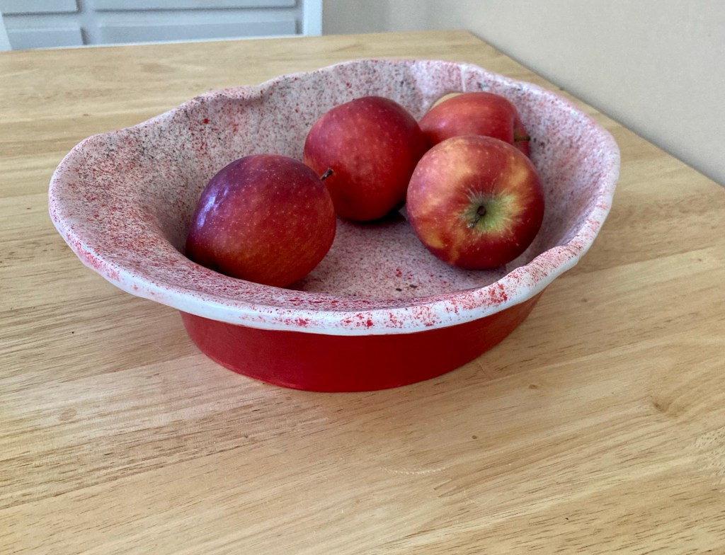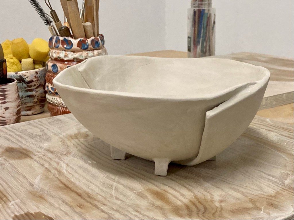 En een schaal uit lappen klei opbouwen. Volgend jaar bakken en glazuren als we weer in Kalamata zijn.