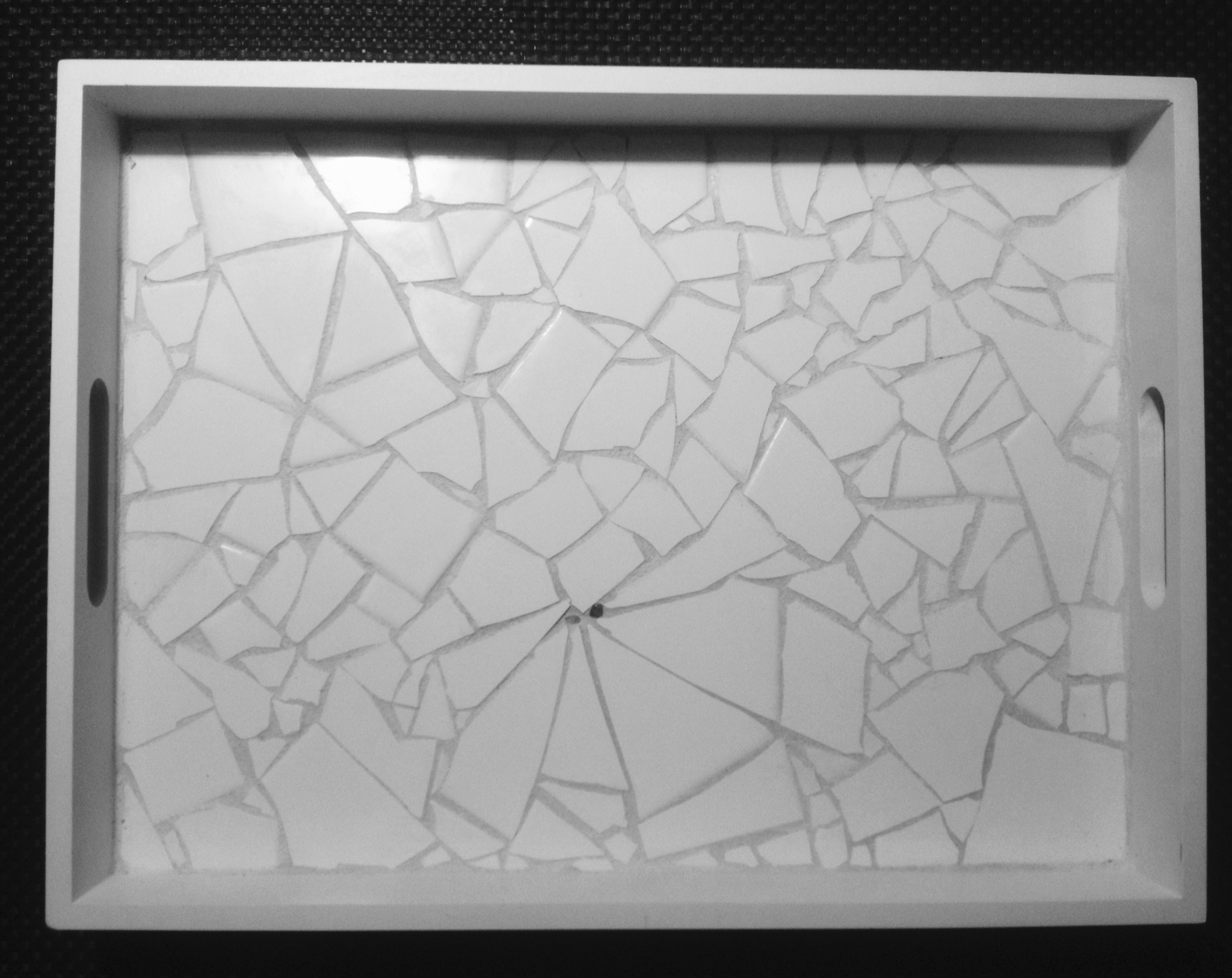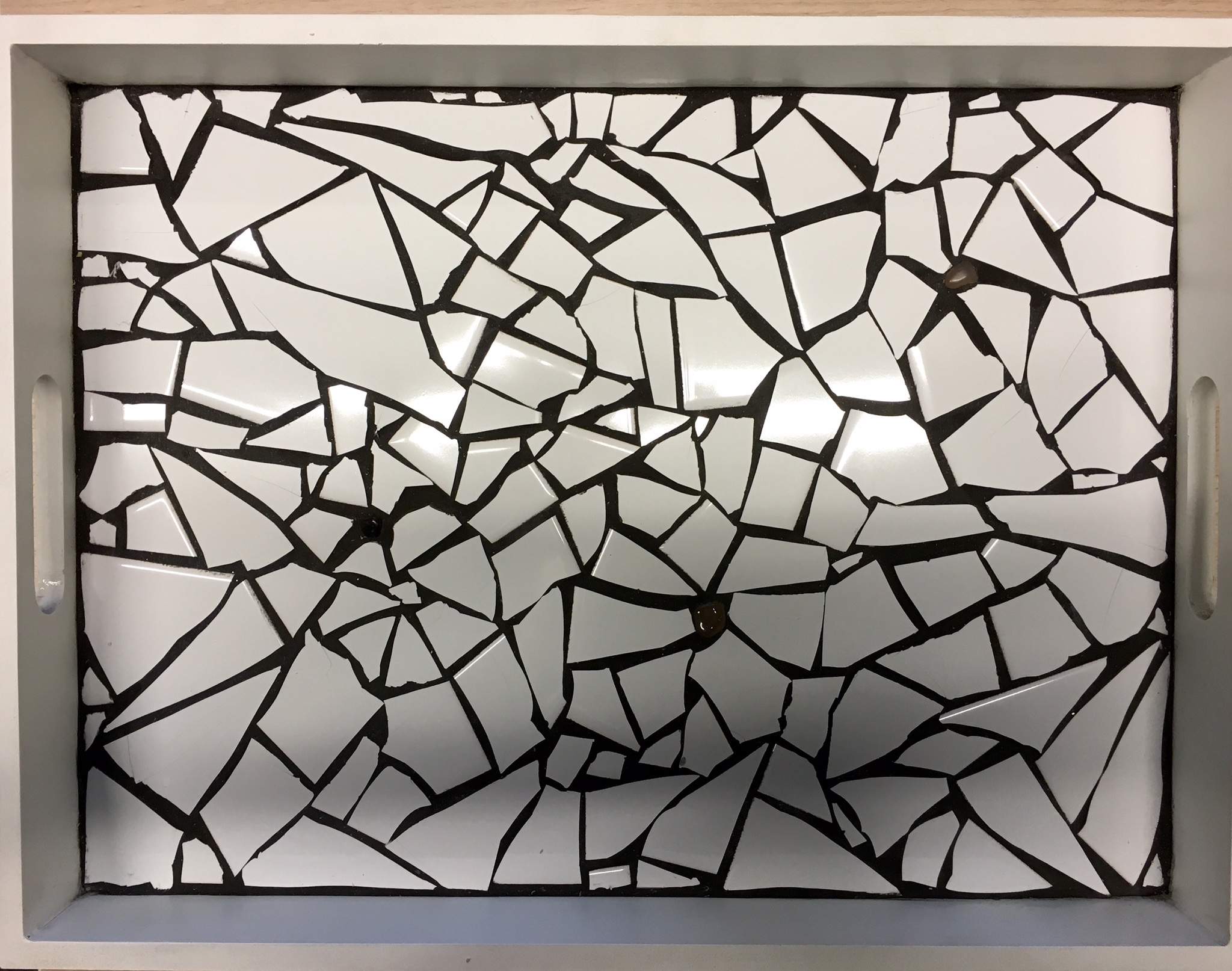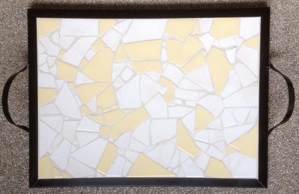 In de kringloop kan je leuke dienbladen scoren. En met restant tegels maak je zo persoonlijke cadeau’s.