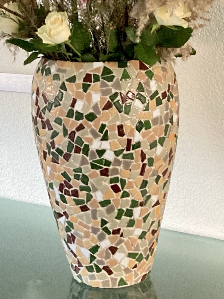 Kant en klare mozieksteentjes heb je in veel kleuren. Ideaal om een oud tafeltje of een beschadigde vaas een nieuwe look te geven.
