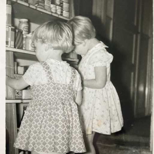 De foto’s: winkel van Opa, onze winkel aan de Voorstraat, spelend in de winkel met mijn zusje